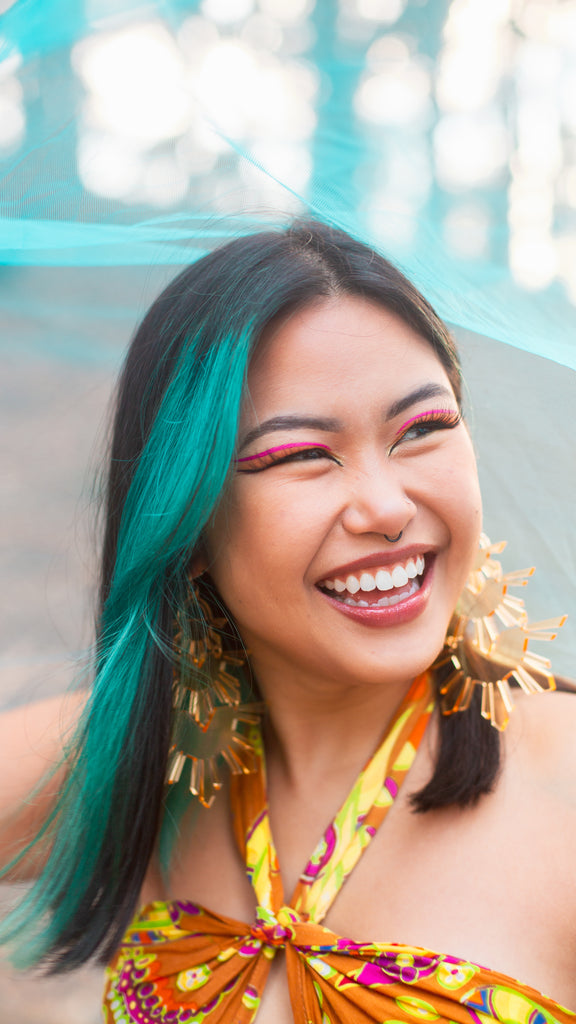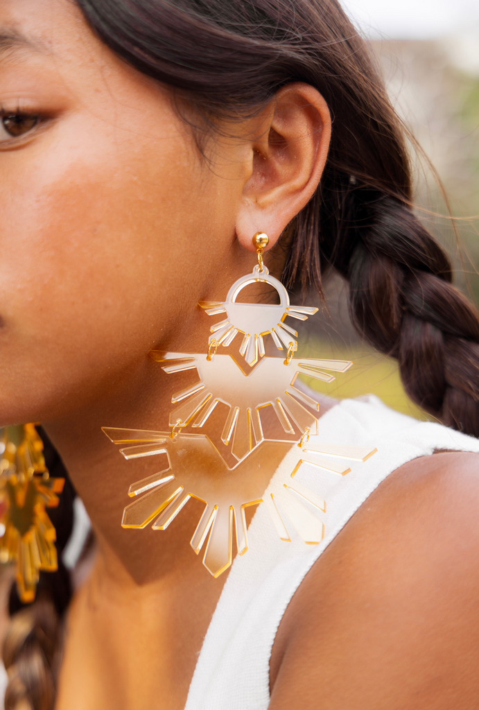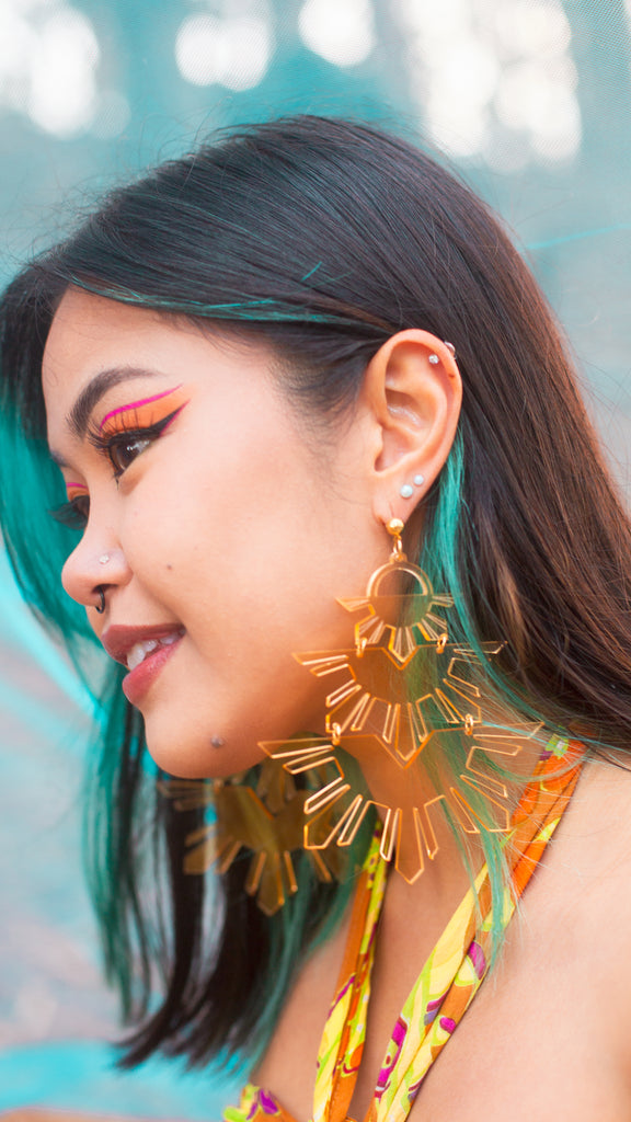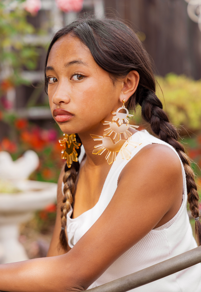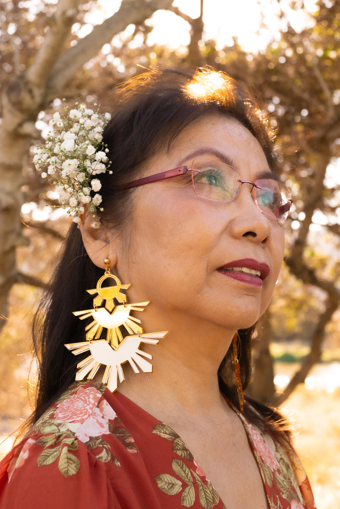 Nanay is the Tagalog word for mother. This piece is for our matriarchs. 3 Tiered sun design, this piece is made to make a statement, the same way strong Pinay mothers do.