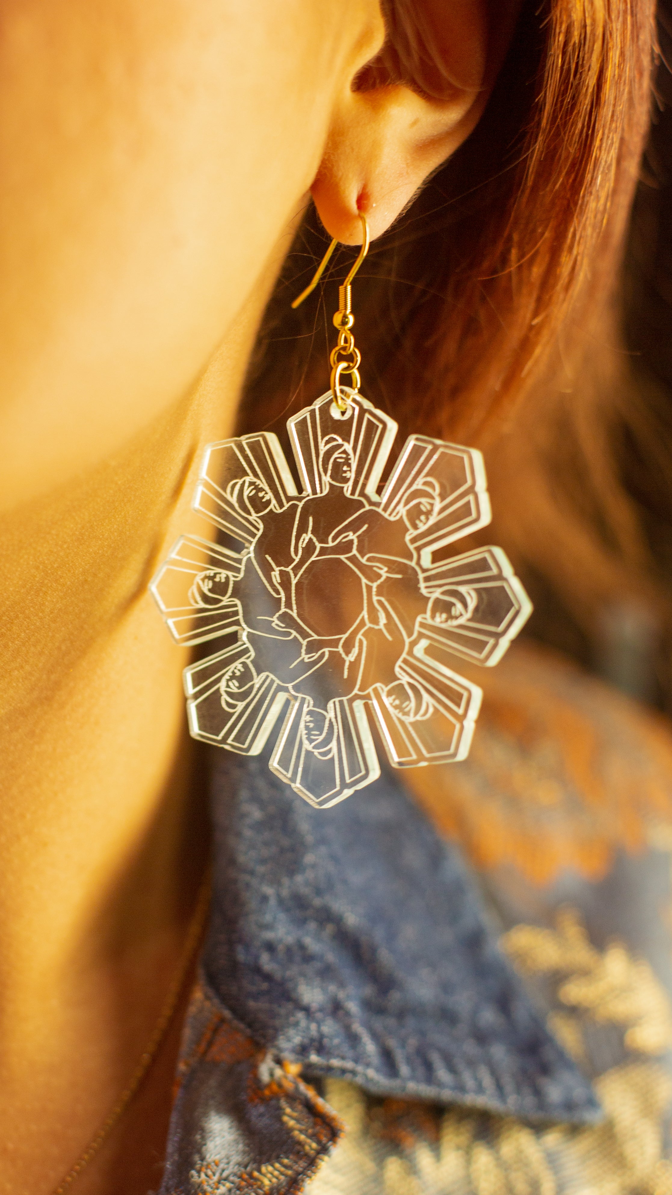 Hawak is Tagalog for hold. This piece is a re-imagining of the Philippine sun. The rays become the women who hold our people together.